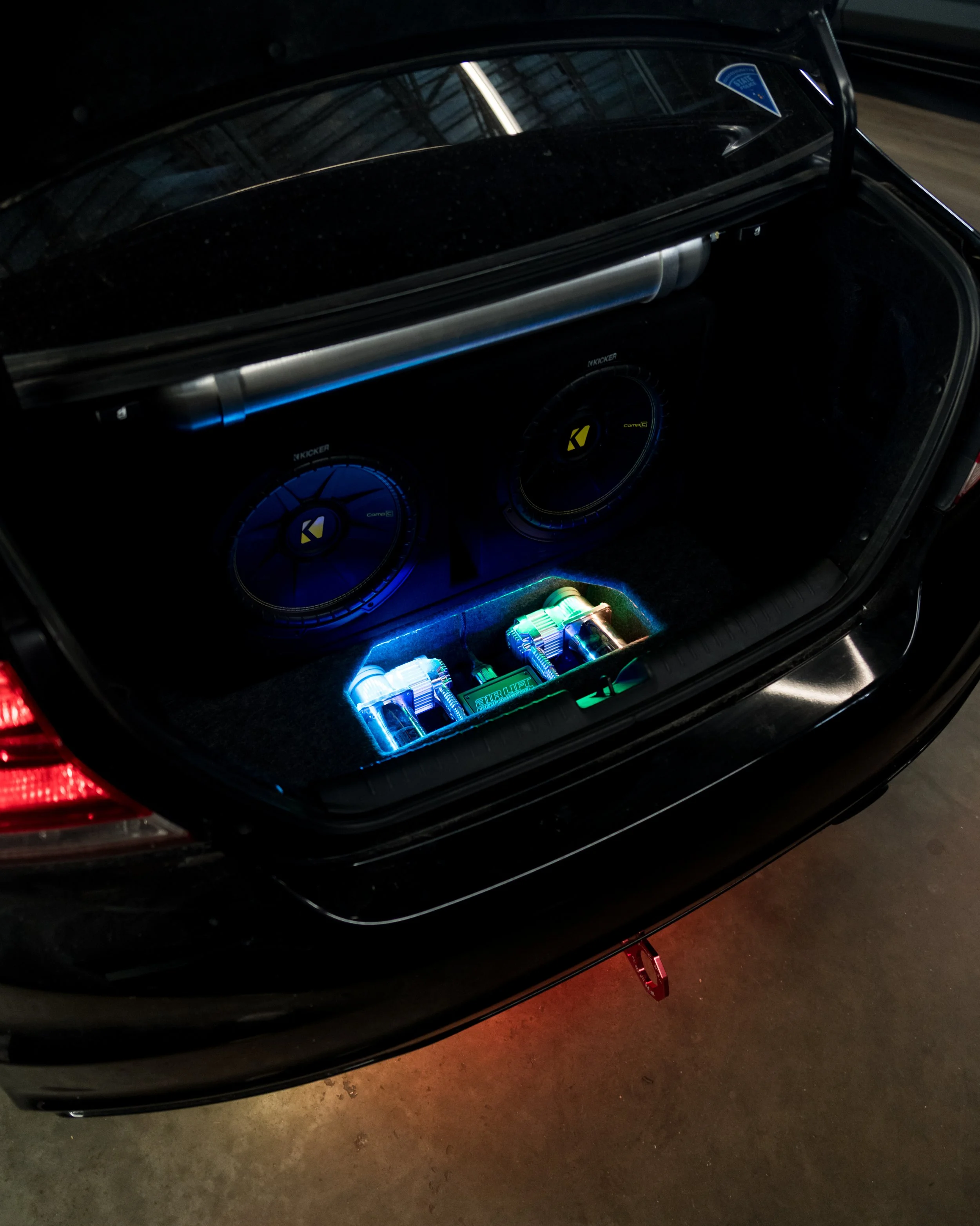 We can help you design and build a custom trunk space, often to showcase your air ride suspension setup or a high-end sound system. Add custom lighting, screens, subwoofers, and more to enhance your setup. Custom trunks by RDM Autostyling are both functional and visually stunning, complete with professional wiring and trim.
